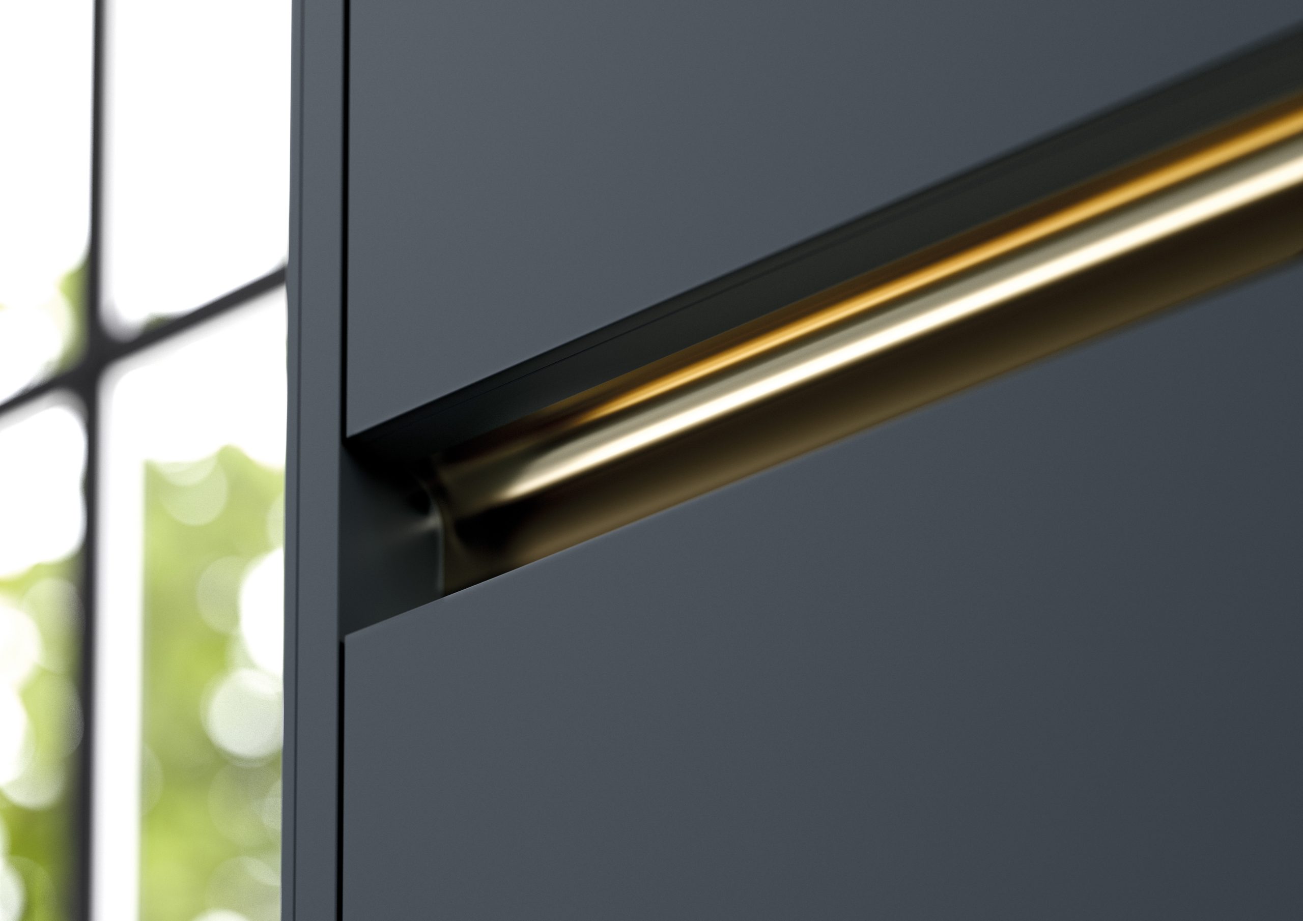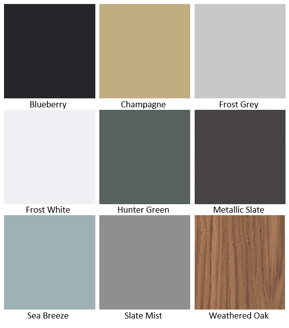 Available in 8 acrylic colours and 1 wood effect each accented with a rebated metallic profile in either Stainless Steel, Brushed Brass or Matt Black and with either matching or Glass Effect Edging.