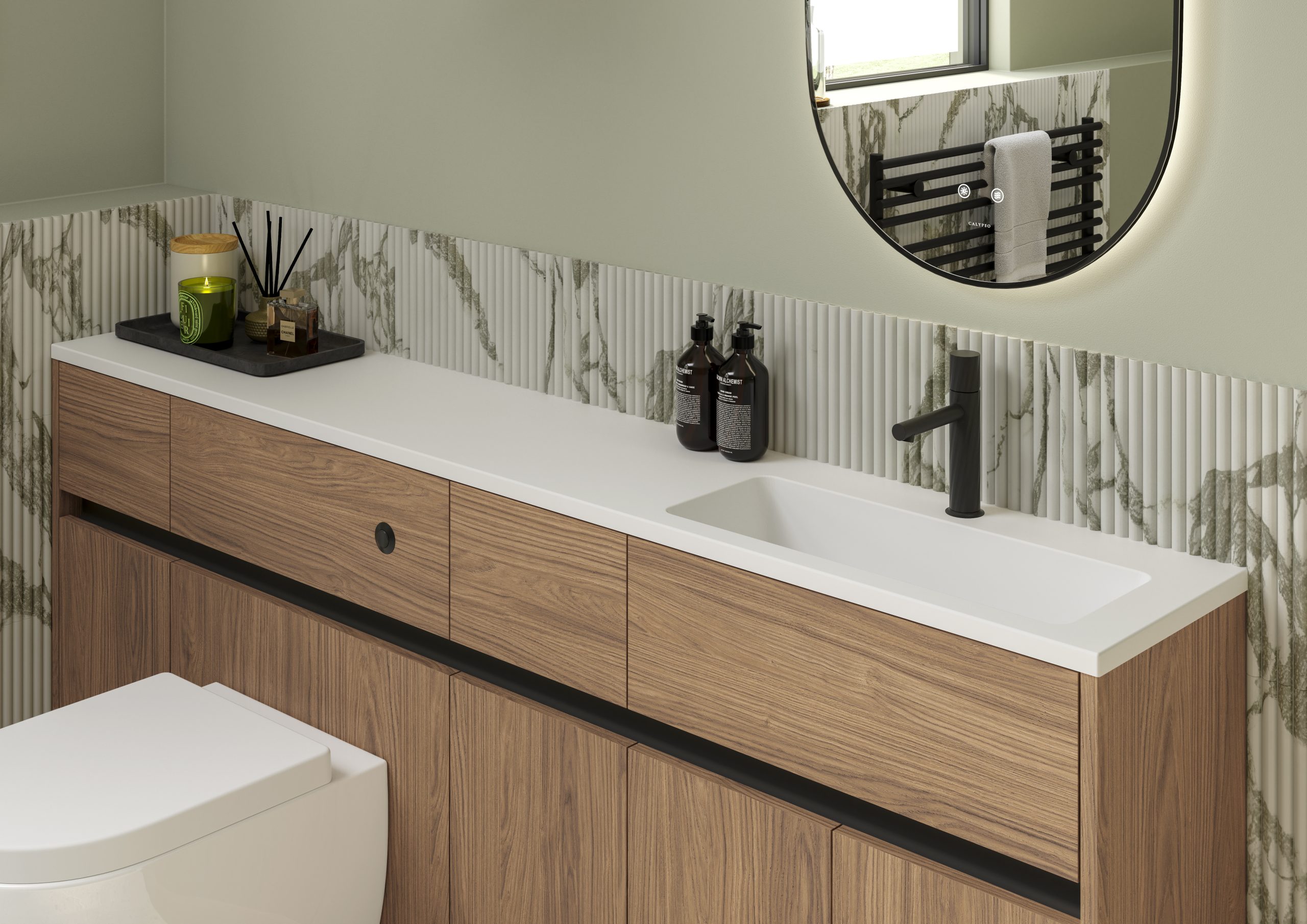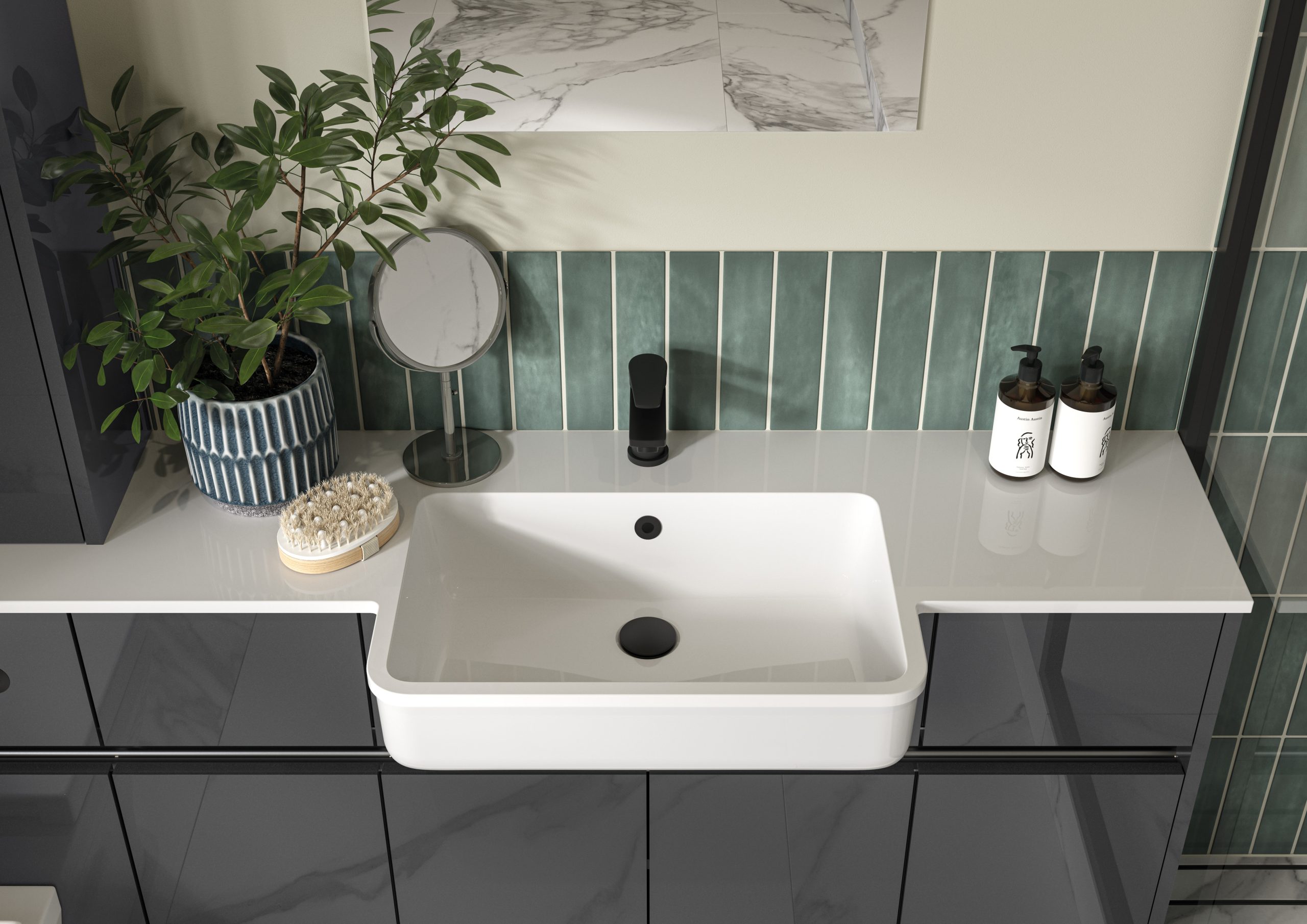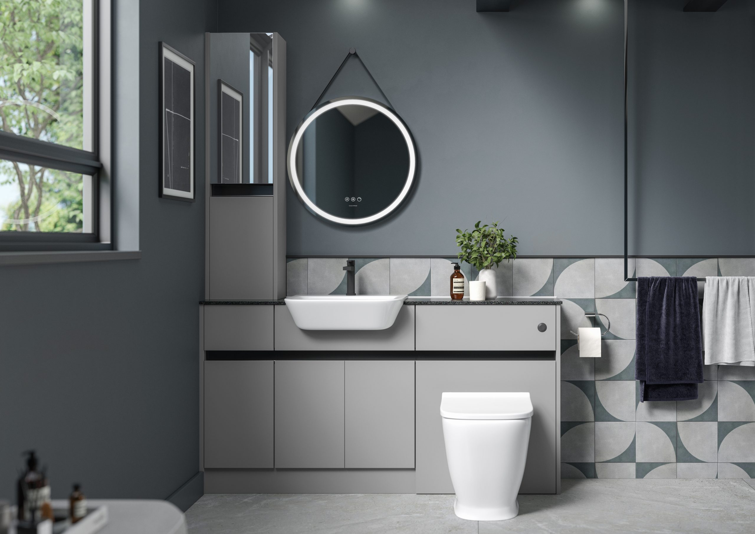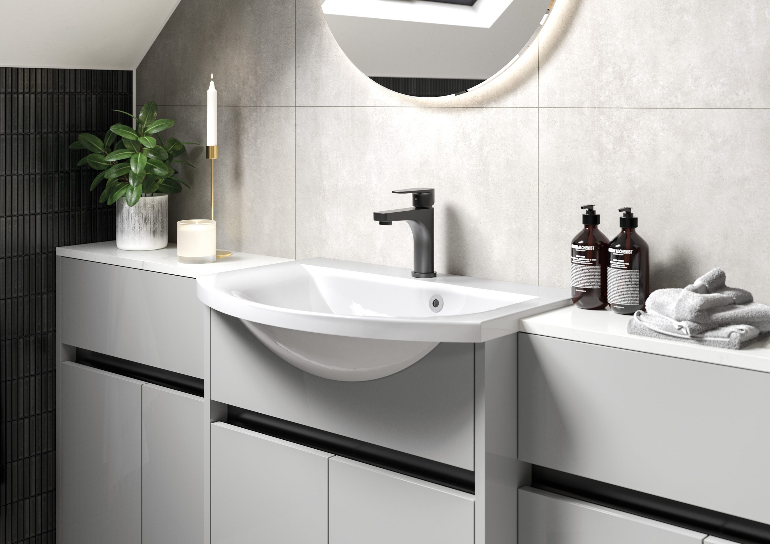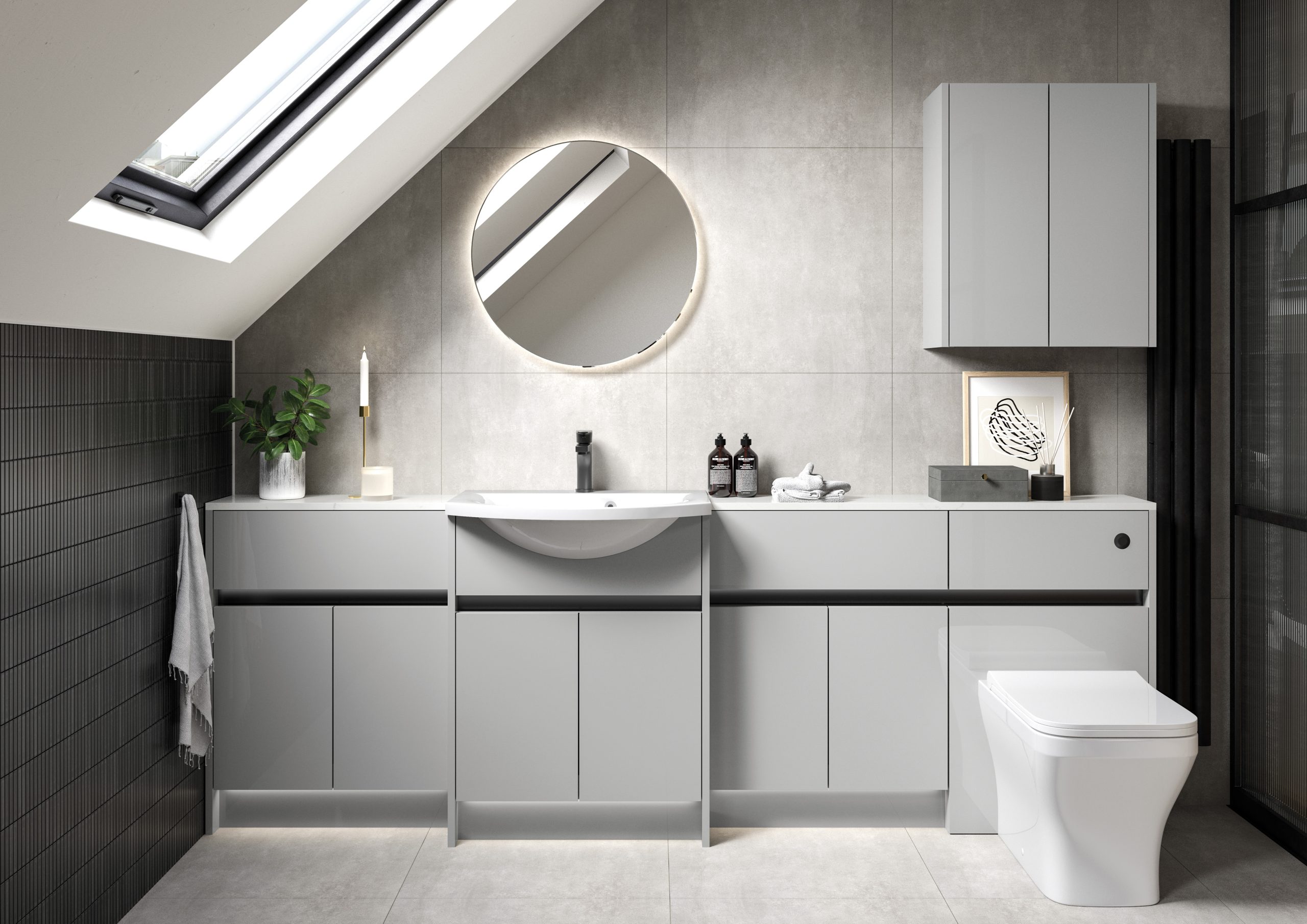 Choose from a combination of Vanity Units (including wall hung), WC Units, Wall and Base Units (in standard or slimline options) to make the most of your space. Inside carcasses are complementary Grey Linen effect. Add in your choice of Basins, Worktops and Brassware from a huge selection available and truly make your bathroom your own.