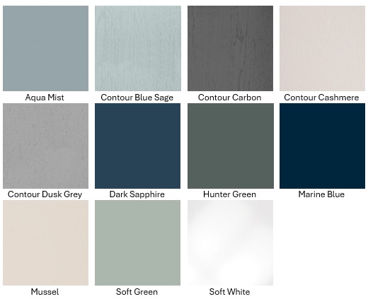 Available in 12 soft touch Matt or Wood Grain effect colours.