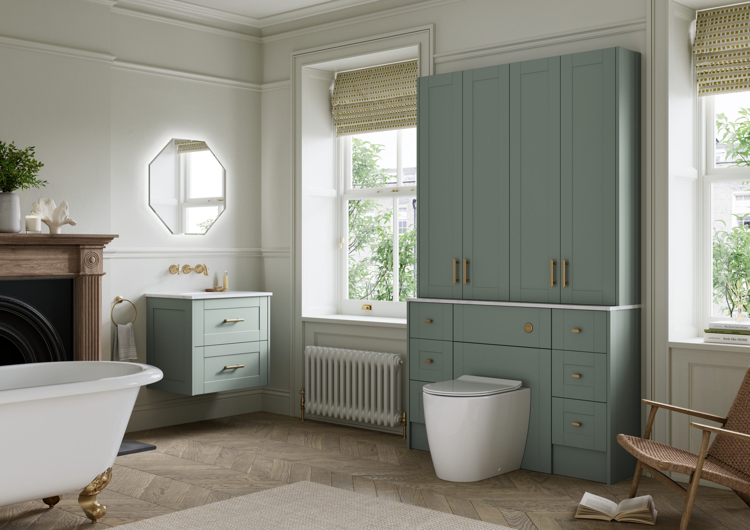 Choose from a combination of Vanity Units (including wall hung), WC Units, Wall and Base Units (in either standard, deep or slimline options) to make the most of your space. Inside carcasses are either Grey Linen, White, Clay or Anthracite Linen to either match or complement the outside door colour chosen. Add in your choice of Basins, Handles, Worktops, WC’s and Brassware from a huge selection available and truly make your bathroom your own.