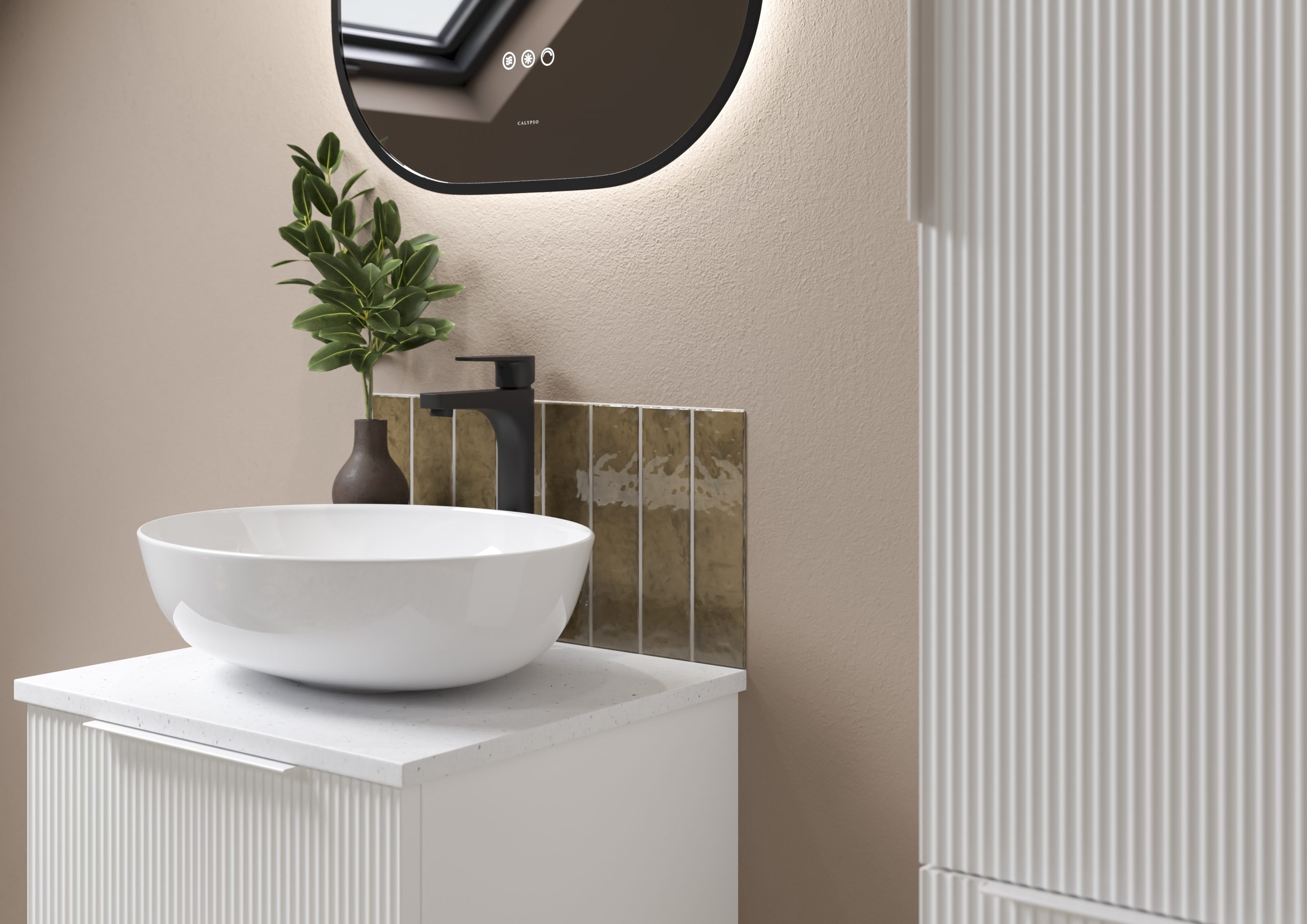The Calypso Tesima Premium Vanity Furniture Range adds a modern touch to your bathroom with either a fluted or flat fronted design with a matching integrated handle.