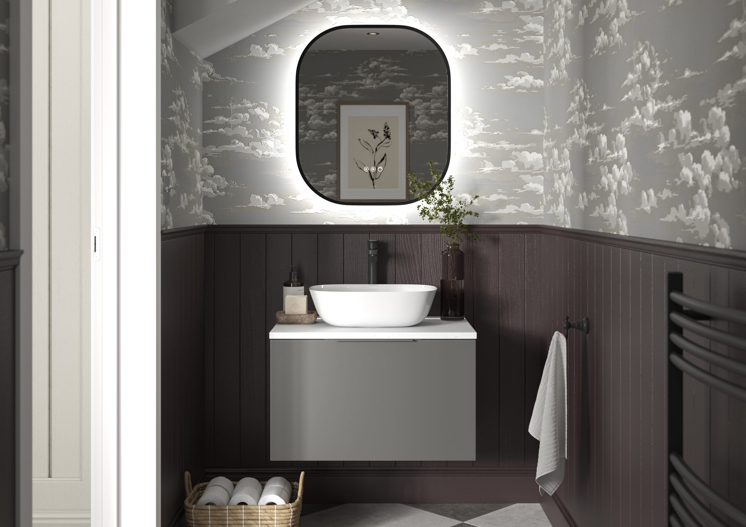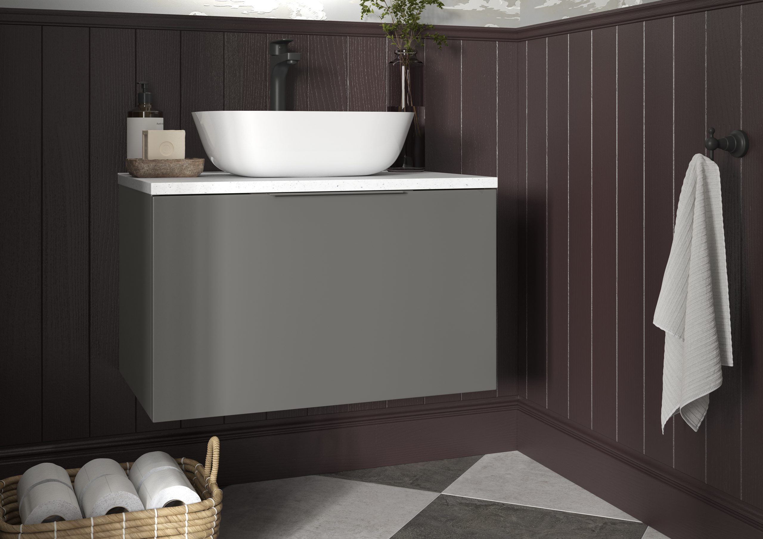 Choose from 3 sizes of Wall-Hung Vanity Units (to create the illusion of space) and Tall Wall Units to make the most of your space. Add in your choice of 2 different shaped Sit-On Basins, White Marble, White Quartz or Character Oak Worktops and Brassware from a huge selection available and truly make your bathroom your own.
