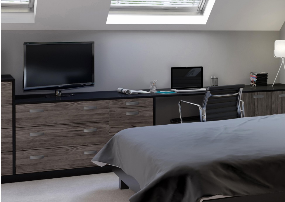Make the most of every inch of available space, whether this is a whole room or an addition to a bedroom or living area, with flexible, custom storage that works for you. Get organised with optional stationary, filing or pull-out drawers and open or closed shelving including soft close drawers and doors as standard. Compliment or contrast your internal shelving and cabinets with your door choice by selecting from 4 Cabinet Colours – Pure White, Ash Grey, Sand Oak and Linen Effect.
