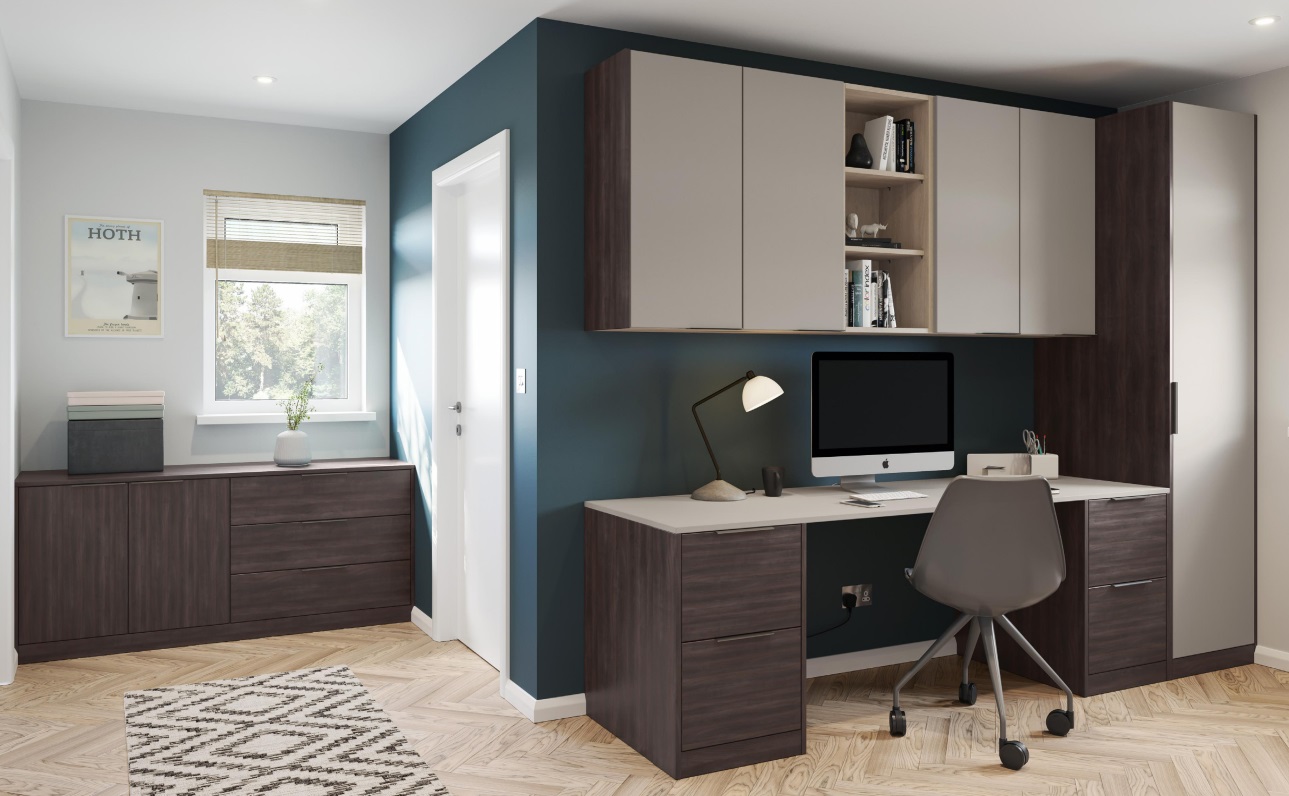 Make the most of all the available space, whether you are dedicating a part of your bedroom or living area or fitting out a whole room with custom storage that works for you. Desks come with optional stationary, filing or pull-out drawers and shelving can be in any combination of open and closed areas. Compliment or contrast your internal shelving and cabinets with your door choice by selecting from 4 Cabinet Colours – Pure White, Ash Grey, Sand Oak and Linen Effect.  All Crown furniture comes with soft close doors and drawers as standard.