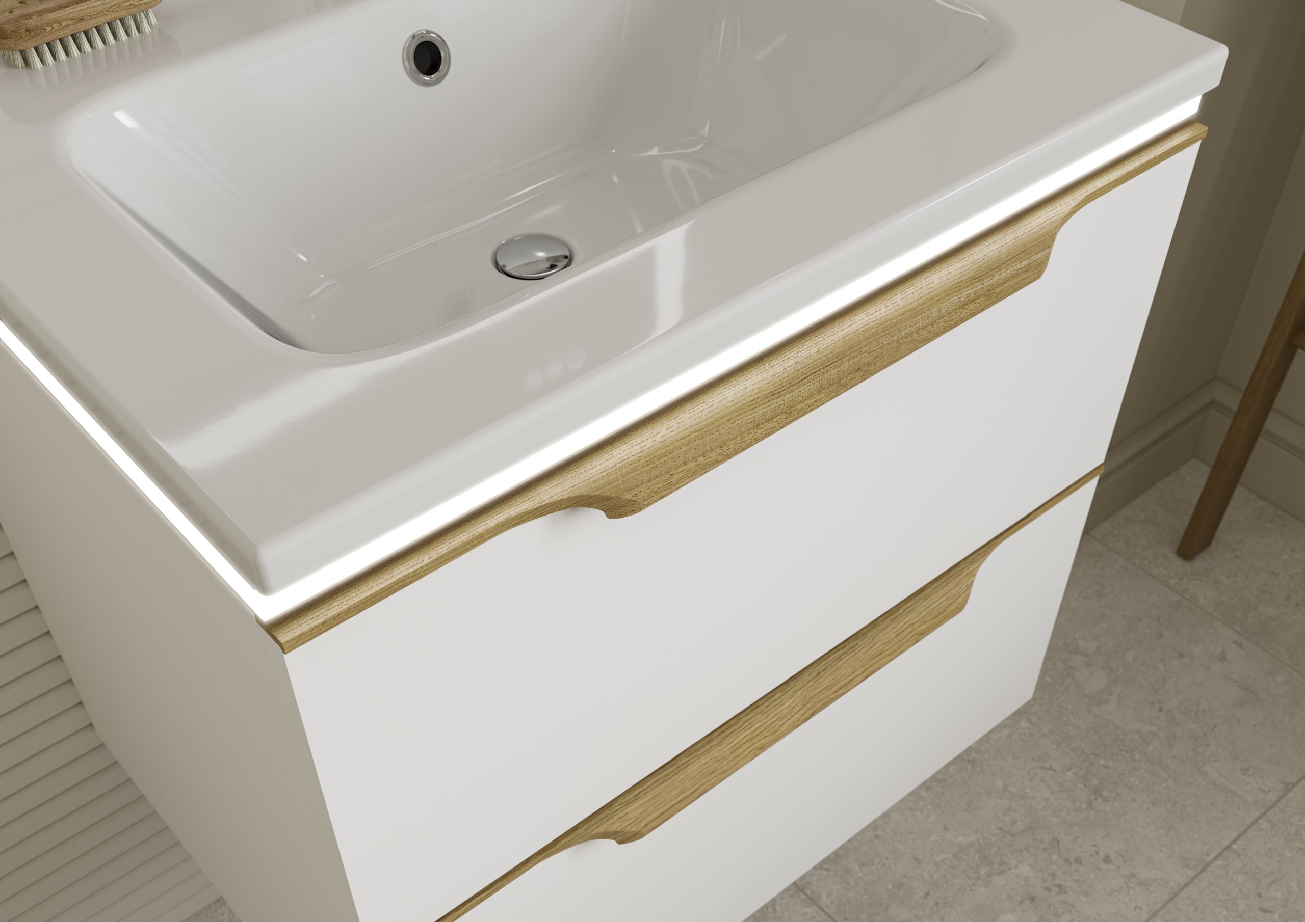 Choose from different sized wall-hung Vanity Units to create the illusion of more space and Tall Wall Units. Add in your choice of either Sit-On or Under Mount Basins, Taps, Worktops (with optional built in towel rail) and even LED Drawer Lighting to create your perfect space.
